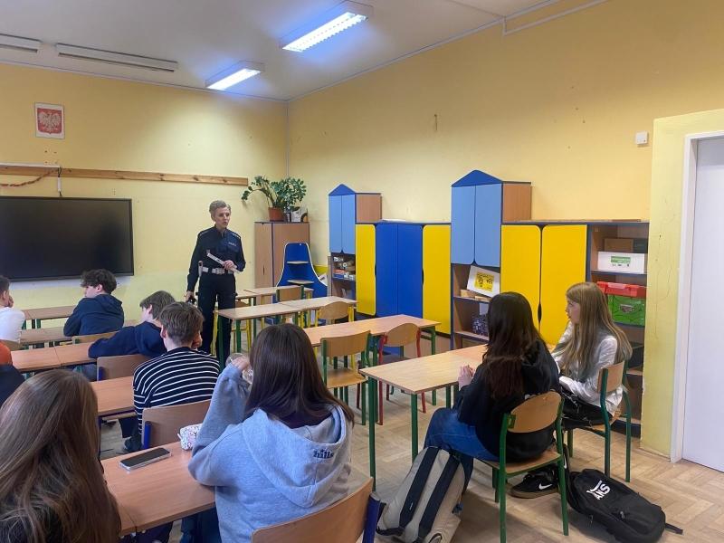 W dniach 15 i 16 stycznia br. w Szkole Podstawowej nr 16 przy ul. Wilczy Dół 4 odbył się cykl ośmiu spotkań z uczniami klas szóstych i siódmych, poświęconych bezpieczeństwu w ruchu drogowym. Głównym tematem spotkań było bezpieczne poruszanie się pieszych ze szczególnym uwzględnieniem znaczenia noszenia elementów odblaskowych.